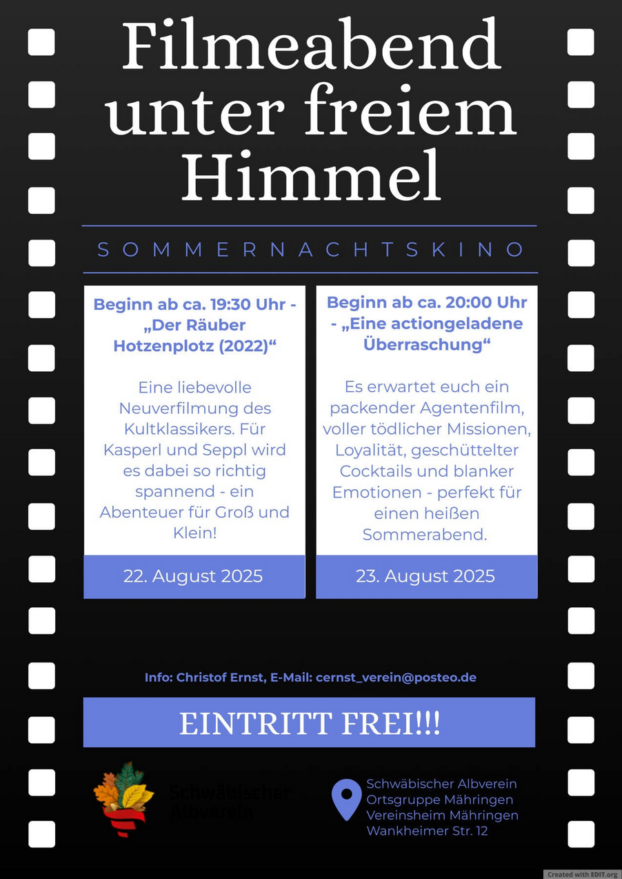 Rückblick Erstes Sommernachtskino in Mähringen am 22.8. und 23.8.2025 Veröffentlicht am 14. September 2025 von ogredakteur2maehringen Bericht_Sommernachtskino_August 2025