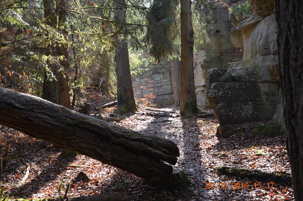 Durch eine stillgelegten Steinbruch ging es zum eigentlichen Ziel der Wanderung, dem wildromantischen Märchensee, der durch einen Wassereinbruch in dem geologisch interessanten Steinbruch entstanden ist.