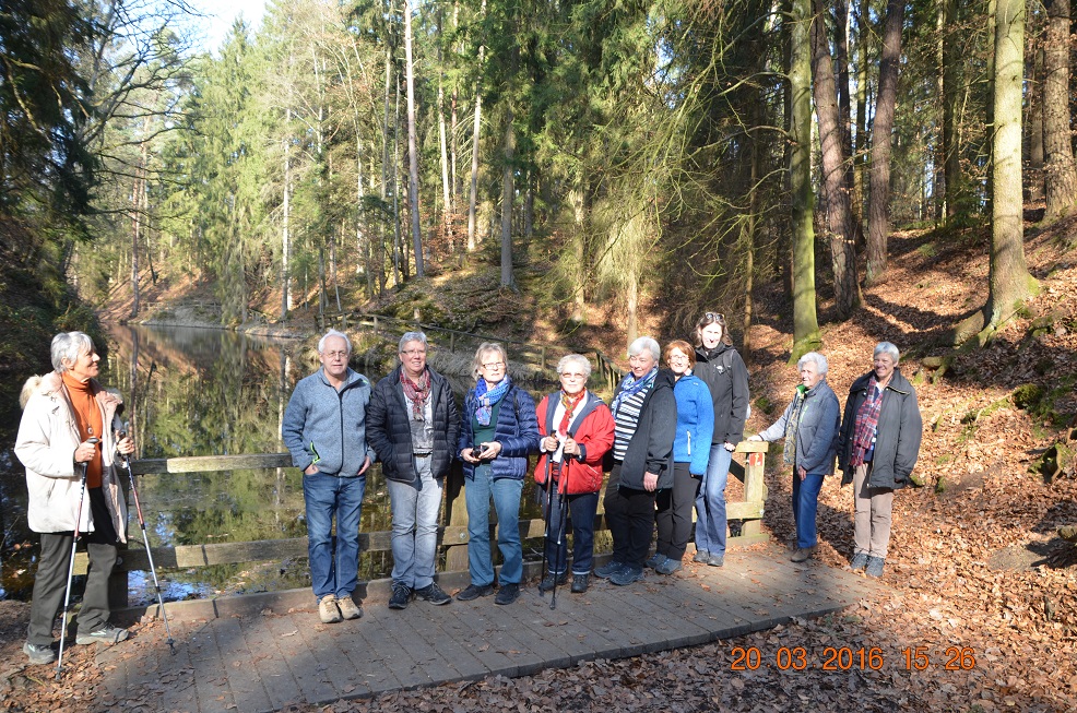 Elf Teilnehmer trafen sich bei noch zaghaftem Frühlingswetter zur Wanderung auf den Pfaffenberg und den Märchensee bei Wendelsheim.