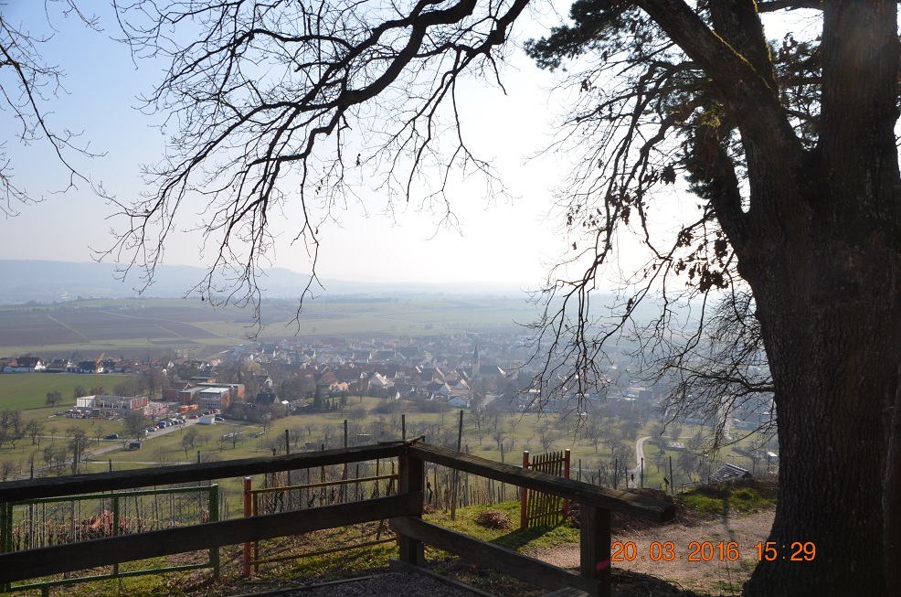 Eine kleine Rast wurde an einem Aussichtspunkt des Gebietes am Waldrand eingelegt mit schönem Blick auf das Neckartal, den Rammert und die schwäbische Alb.