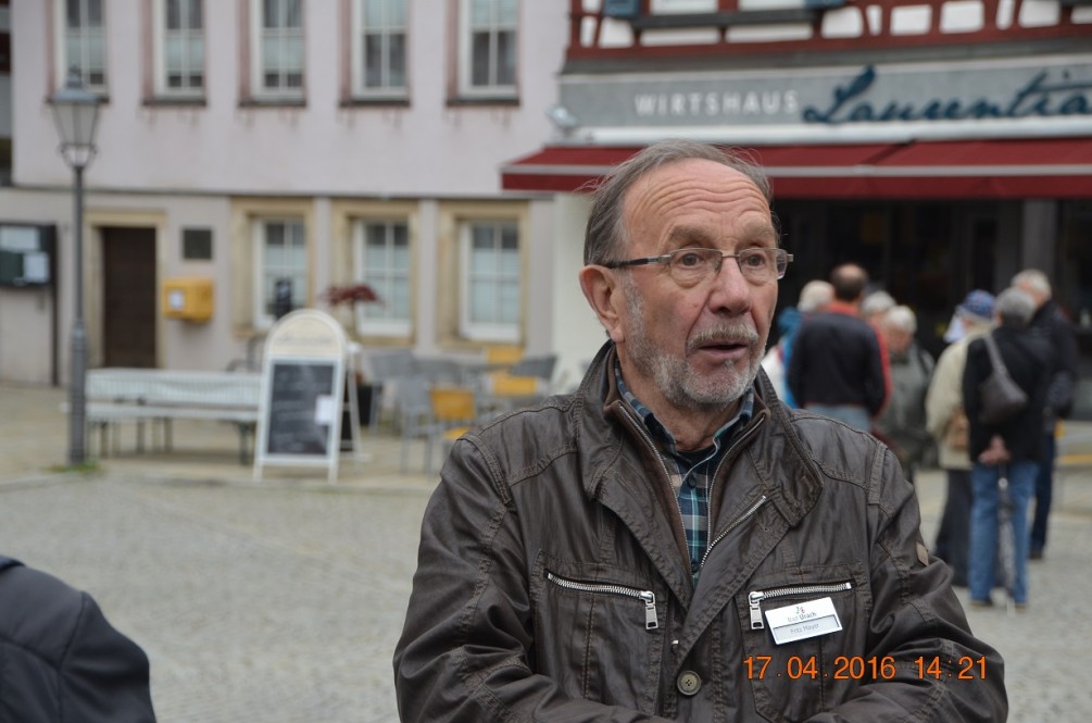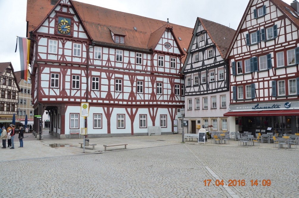 Ausgangspunkt war der Marktplatz mit seinen Fachwerkgebäuden. Jetzt wissen wir, was ein „Schwäbischer Mann“, eine „Schwäbische Frau“ oder ein „Fränkisches Fachwerk“ ist, auch Andreaskreuz und Feuerbock sind uns nun ein Begriff.