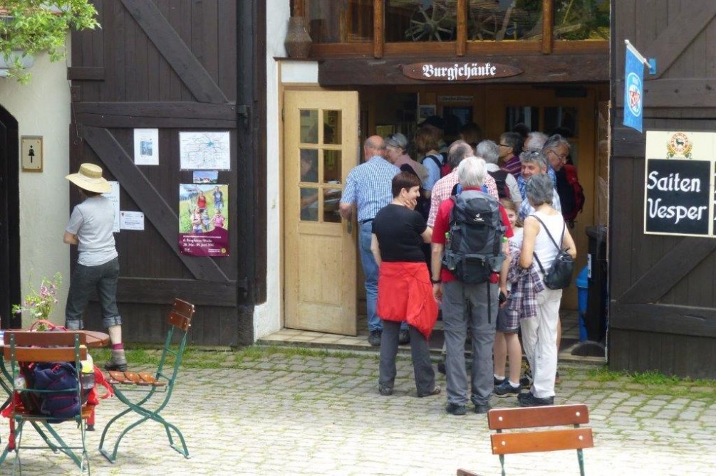 Grillwürste, Brötchen, Senf und Getränke wurden hergerichtet und bei schönstem Sonnenschein verspeist. Zum Nachtisch gönnten wir uns noch Kaffee und Kuchen oder auch ein Eis in der Burgschenke auf der Burg Derneck.