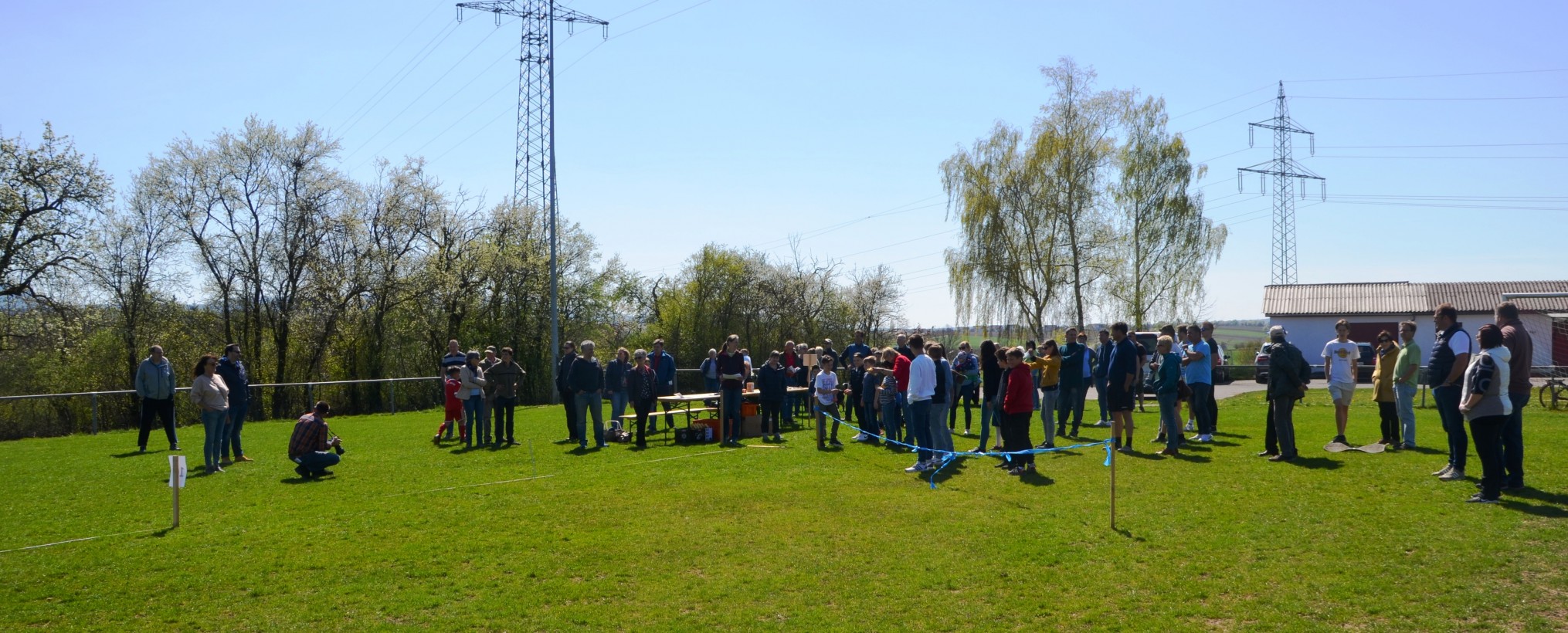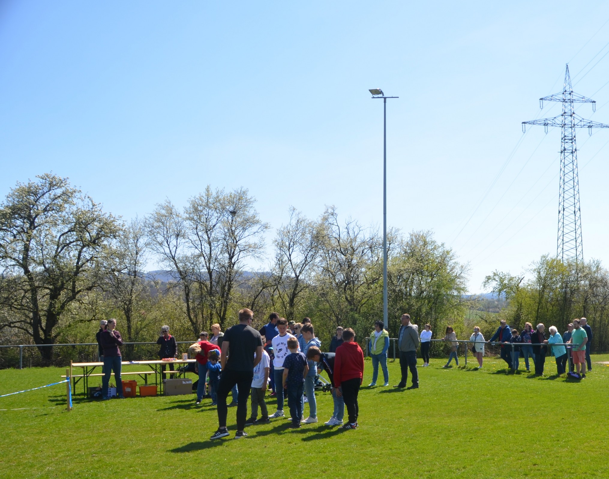 Trotz des herrlichen Wetters war die Zuschauermenge und die Zahl der Teilnehmer, insbesondere die der Kinder, im Vergleich zu Eierwerfen der vergangenen Jahre überschaubar. Vielleicht lag es an Veranstaltungen anderer Einrichtungen, die früher an Ostermontagen nicht stattfanden. Es nahmen 16 Kinder- und Jugendliche und 28 Erwachsene am Wurfwettbewerb teil.
