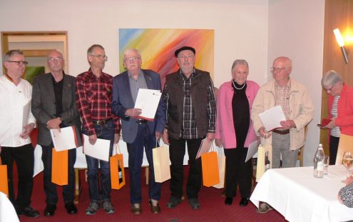 Es ist schön festzustellen, dass es Mitglieder gibt, die seit vielen Jahre die Treue zur Ortsgruppe halten. Sieben anwesenden Jubilaren und Jubilarinnen, nämlich Günter Bailer für 50jährige Mitgliedschaft, Rolf Dürr, Ludwig Löffler, Gerhard Mayer und Alfred Schäfer für 60jährige Mitgliedschaft und Anneliese Schaal und Herbert Kern für 70jährige Mitgliedschaft in der Ortsgruppe wurden die entsprechenden Urkunden und Ehrennadeln des SAV überreicht. Den nicht anwesenden 8 Jubilaren und Jubilarinnen werden die Urkunden und Ehrennadeln nachträglich übergeben.