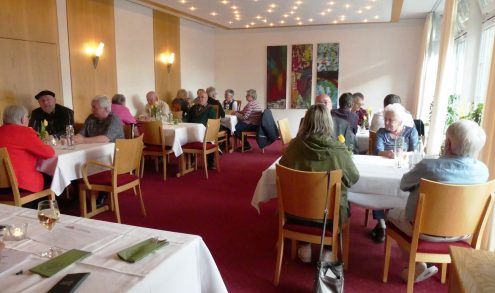24 Mitglieder der Ortsgruppe Mähringen des Schwäbischen Albvereins (SAV) folgten der Einladung zur Mitgliederversammlung am 29.04.2022 im Gasthaus „Mayer´s Waldhorn“ in Mähringen.