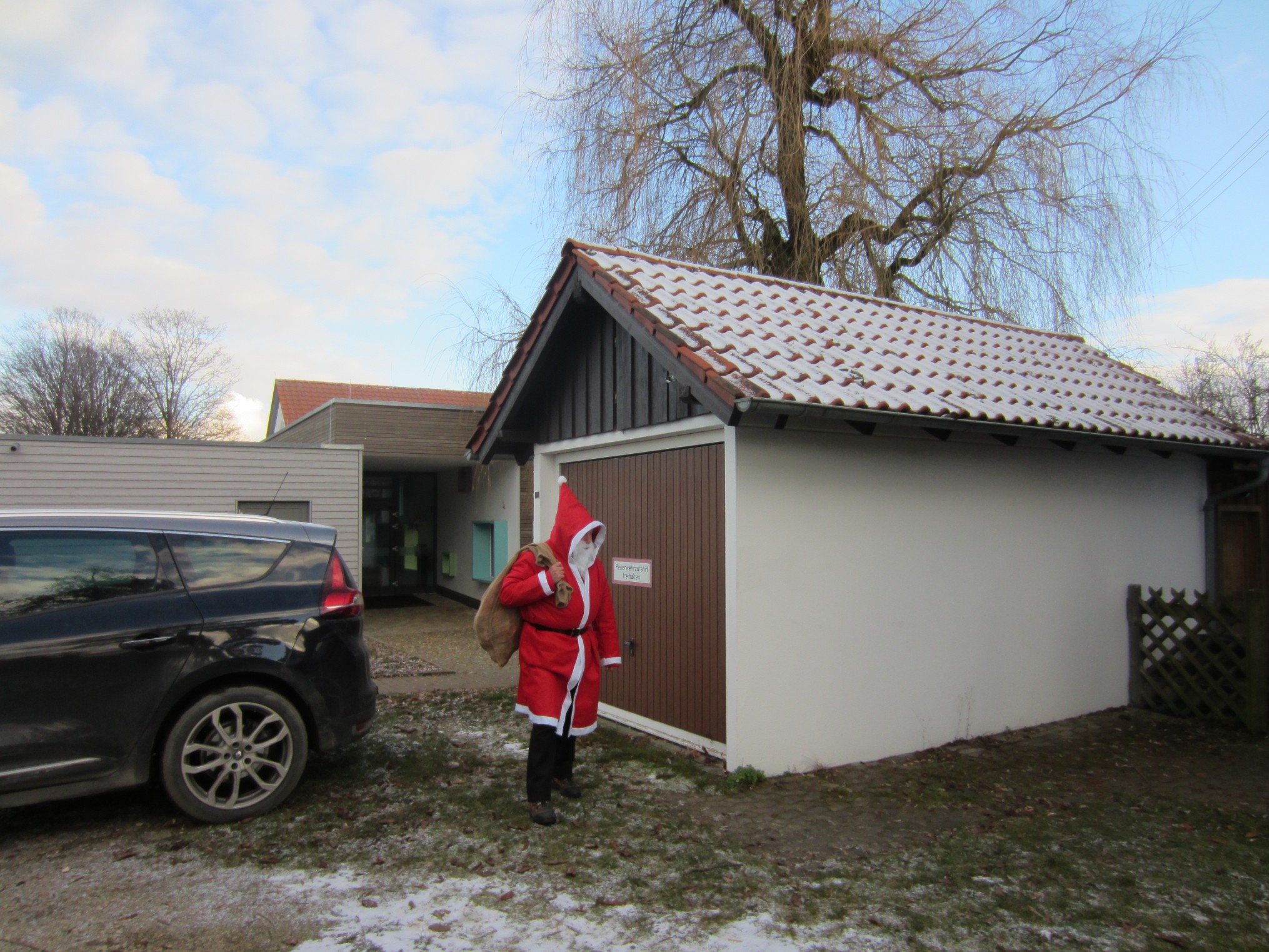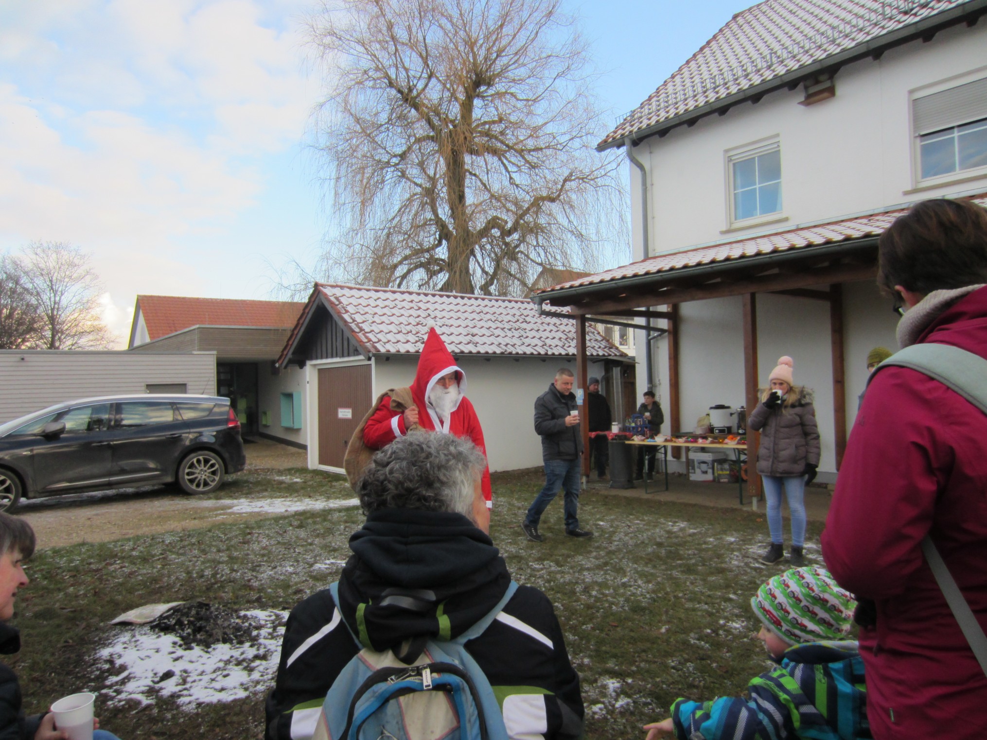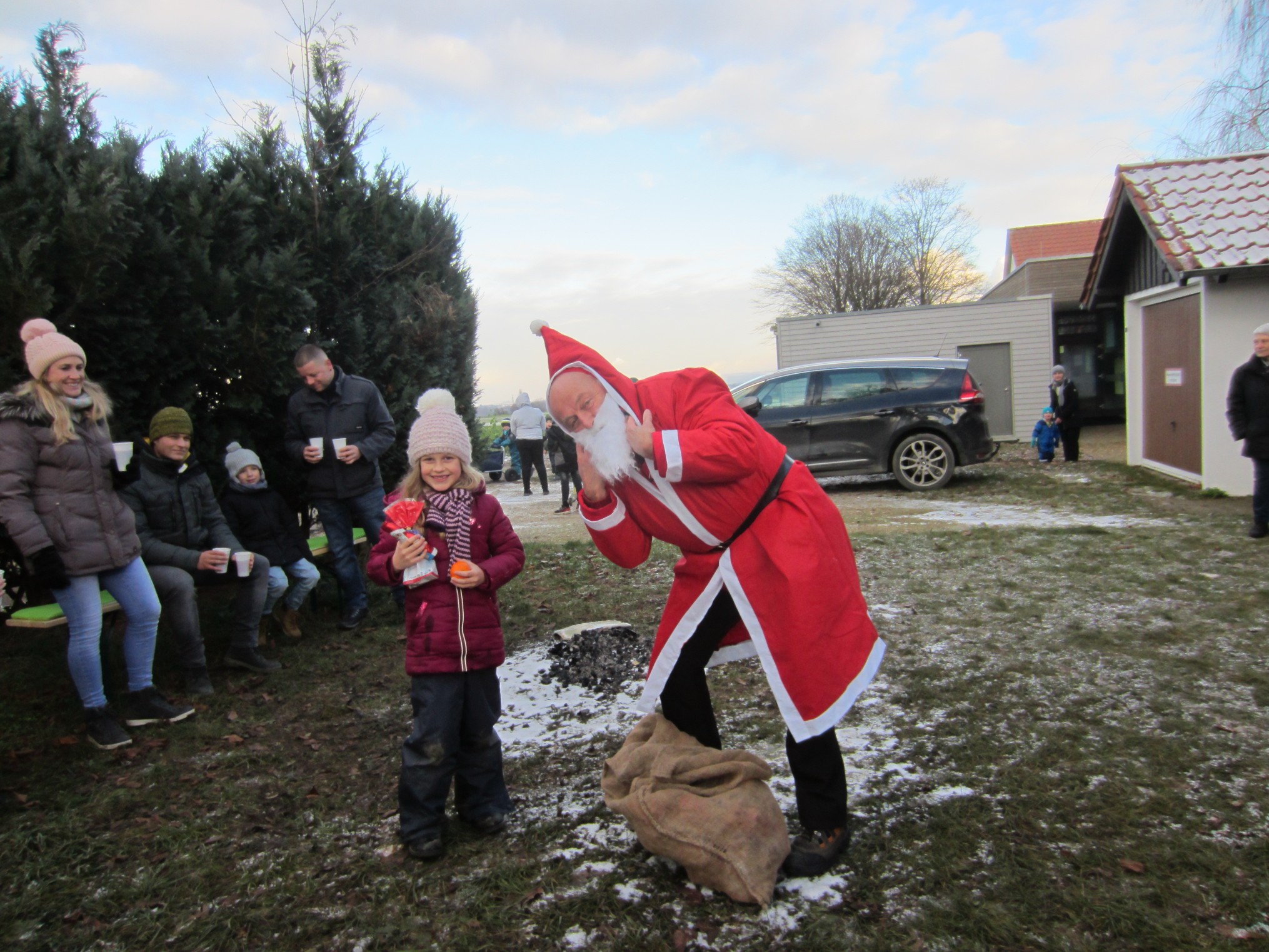 Kaum dort eingetroffen, ließ sich auch ein Vertretet der Weihnachtsmänner blicken und animierte Kinder und Erwachsenen dazu, Weihnachtslieder zu singen. Durch die vorweihnachtliche Stimmung angelockt, kamen weitere 5 Kinder mit deren Eltern um sich am Weihnachtssingen zu beteiligen und die Adventsstimmung zu genießen.