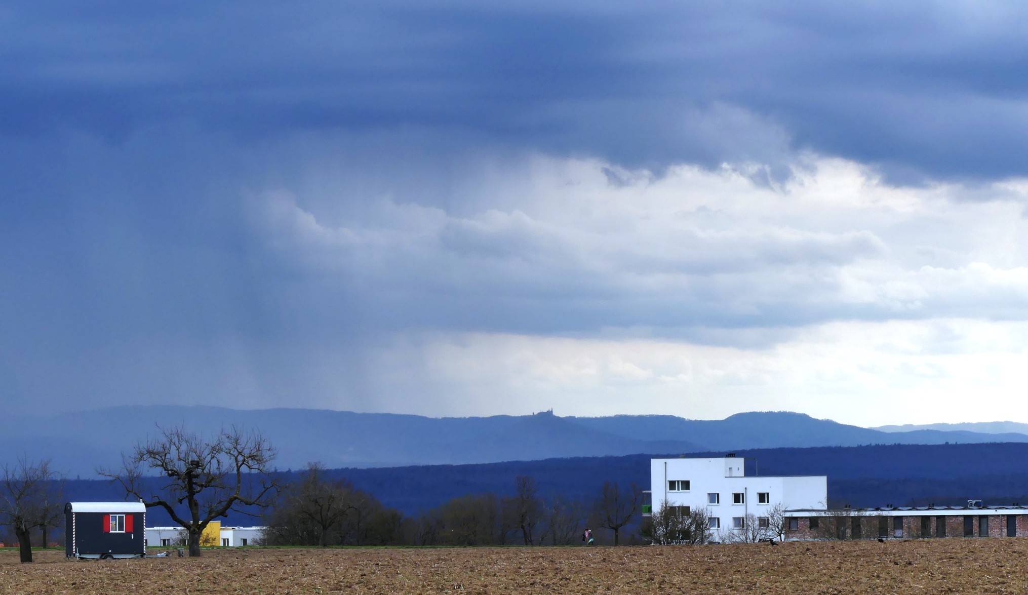 Zunächst genossen die Wanderer den schönen Ausblick auf das Neckartal und den Albtrauf, wobei das Wetter die Eindrücke mit immer wieder wechselnden Kapriolen besonders interessant gestaltete.