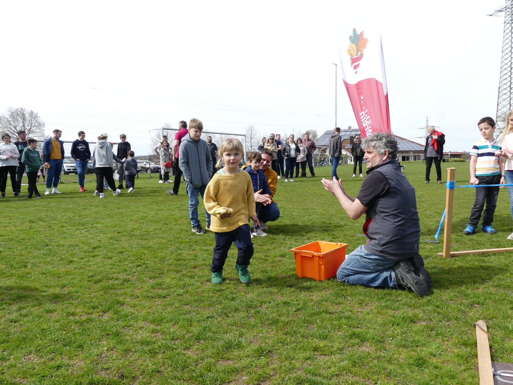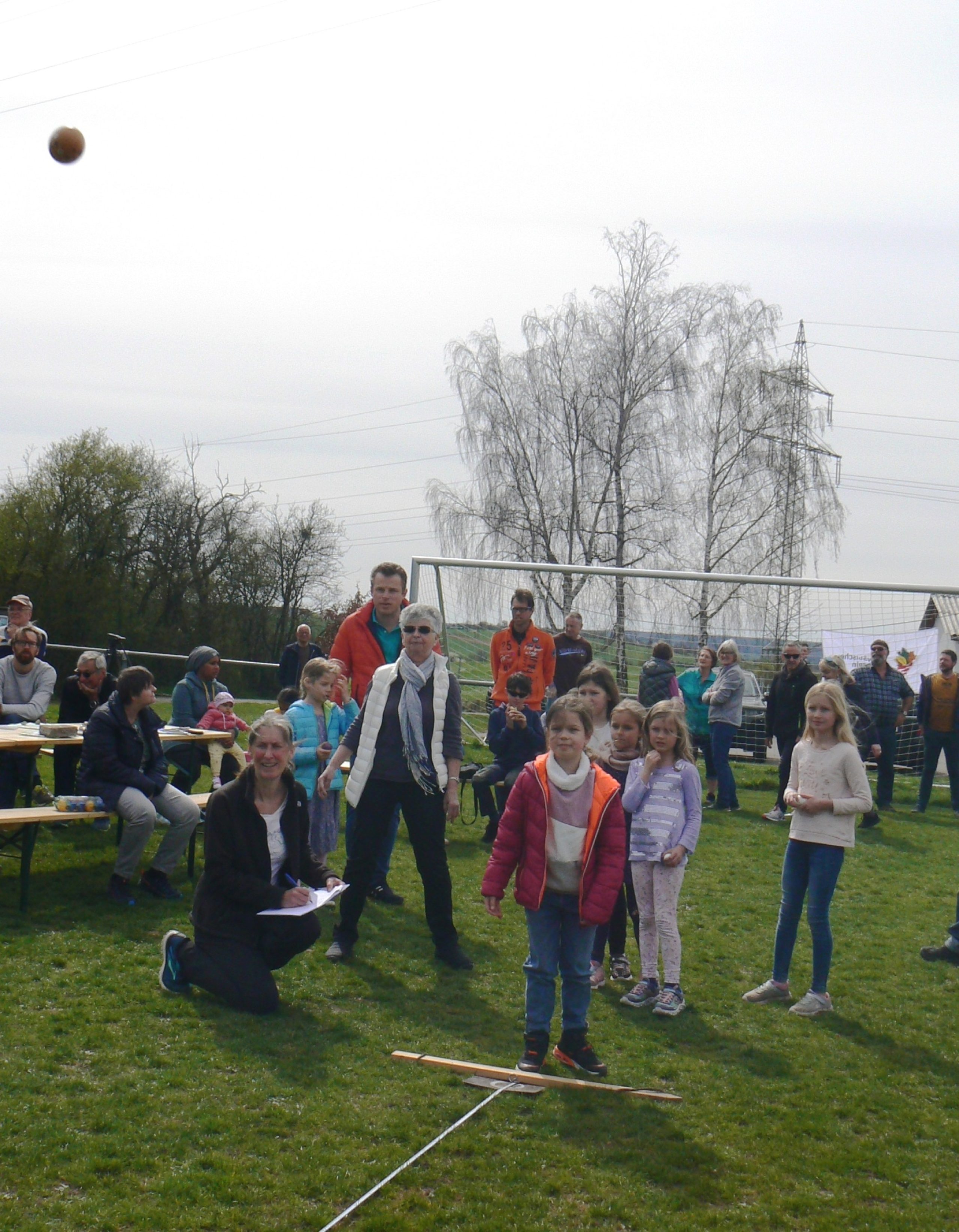 Geworfen wurde in den Altersgruppen Kinder bis 6 Jahre bzw. von 7 bis 10 Jahre, Jugendliche von 11 bis 18 Jahre und Erwachsene ab 18 Jahren. Bei den Frauen konnte Dana Ernst mit 36,00 Metern den weitesten Wurf erzielen. Gesamtsieger mit einer Weite von 68,70 Metern wurde jedoch Noah Schäfer, dem dies schon einmal 2015 im Alter von 14 Jahren gelang. Ihm wurde als Gewinn vom Vorsitzenden der Ortgruppe ein Essensgutschein übergeben. Aber auch die anderen Teilnehmer am Weitwerfen gingen nicht leer aus. Sie erhielten Schokohasen als Trostpreise.