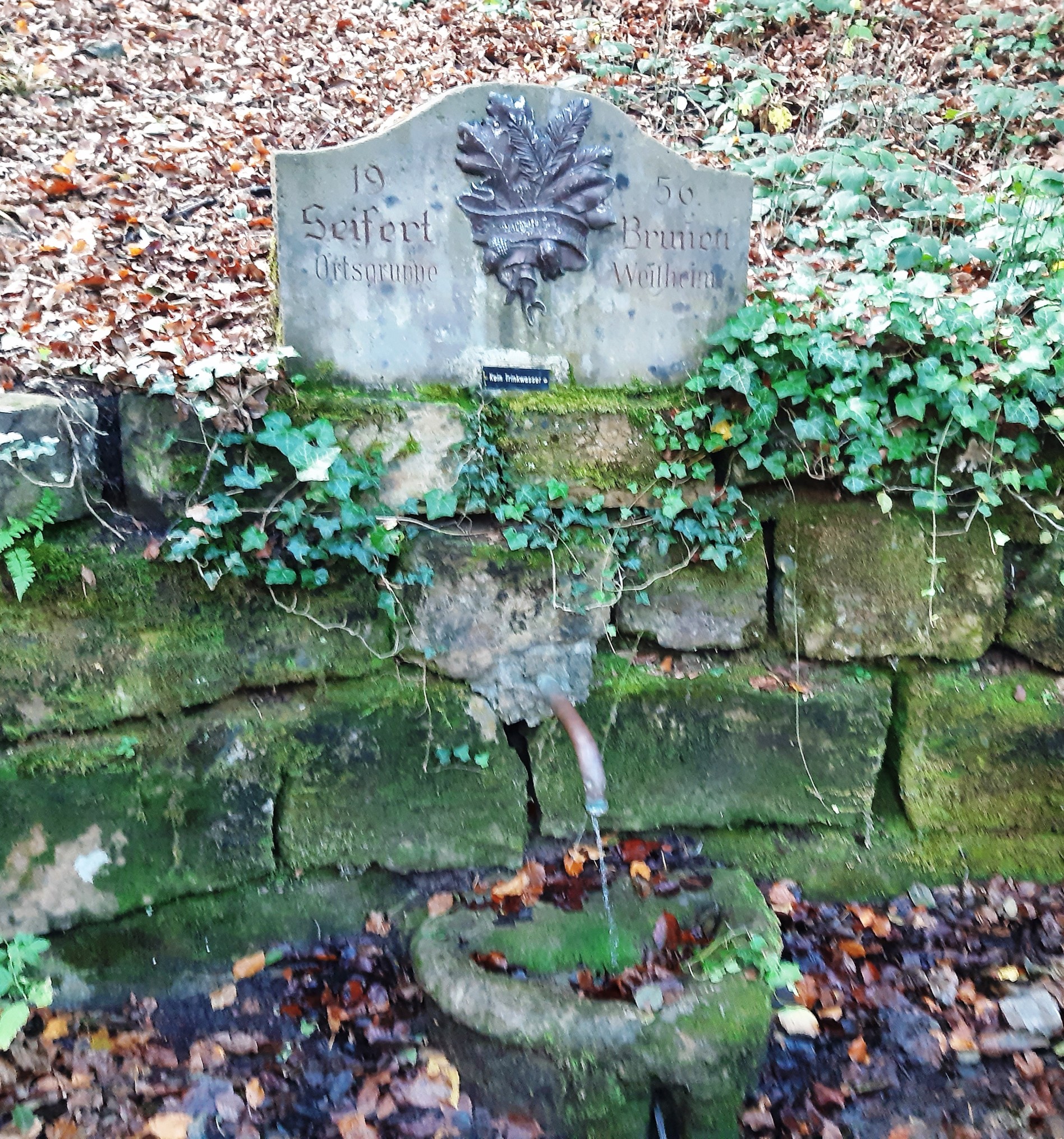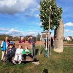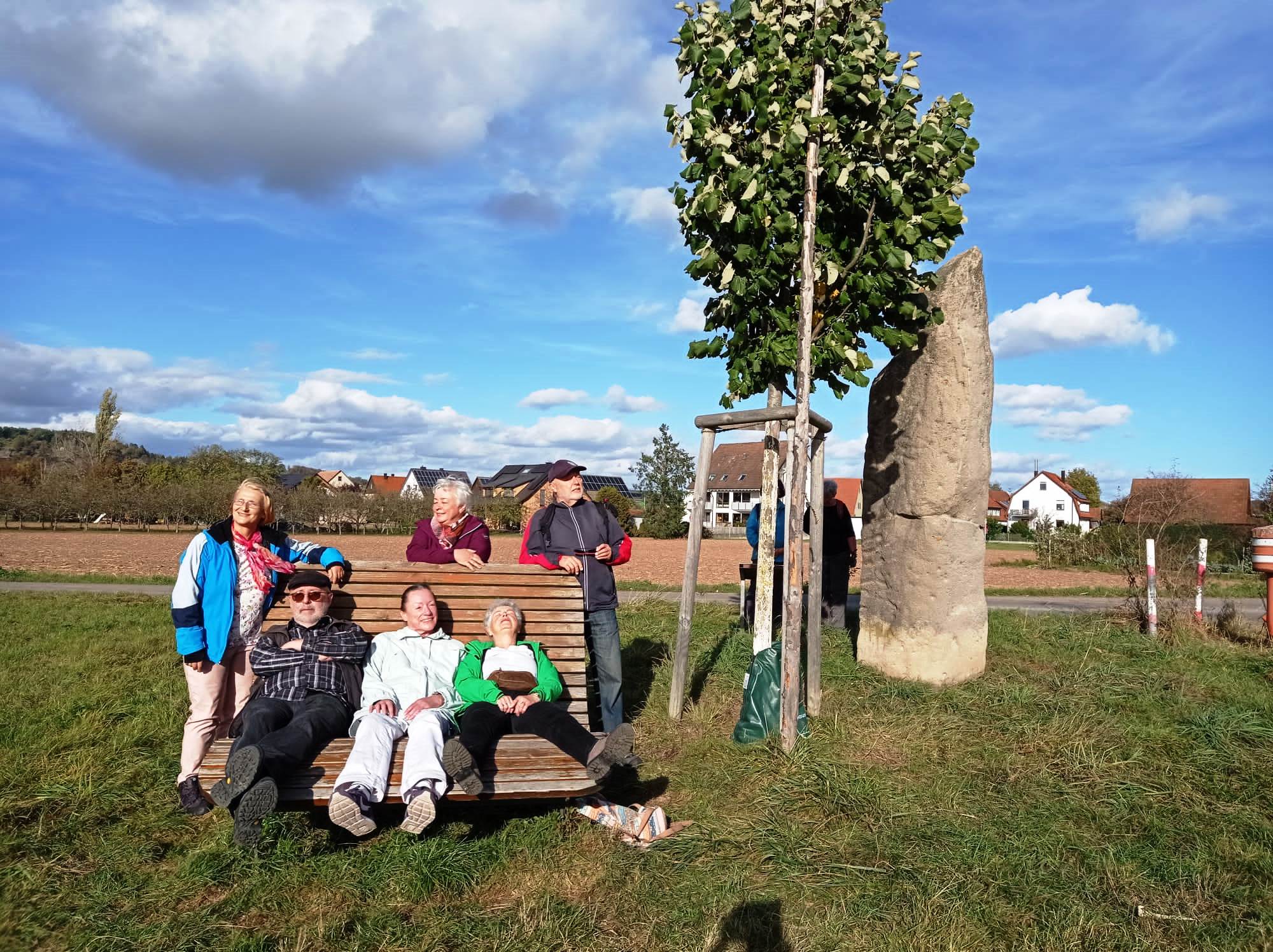Nahe dem „Glaser-Pass“ wurde noch der „Seifert-Brunnen“ besichtigt, bevor es durch Streuobstwiesen und entlang der historischen Weilheimer Scheunenfront zum Menhir von Weilheim ging.