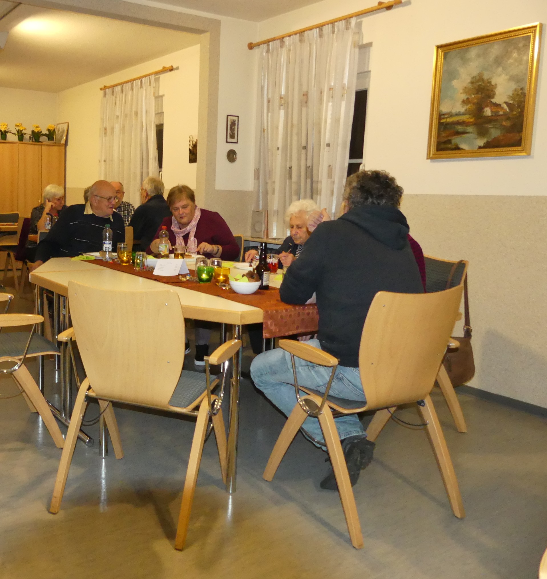 Auch für das leibliche Wohl war gesorgt, denn zu den Mutscheln wurden verschiedene Wurstsalate gereicht und die Teilnehmerinnen und Teilnehmer ließen sich nicht lange bitten kräftig zuzulangen.