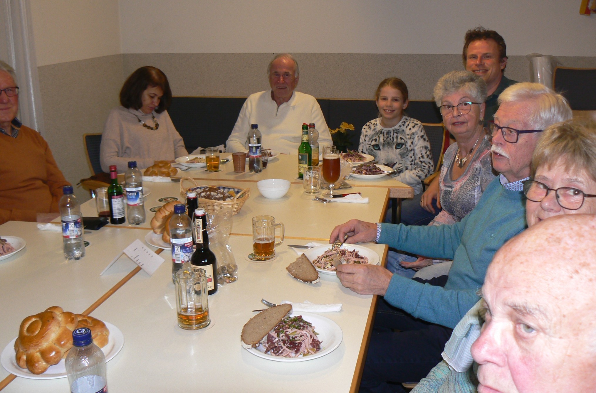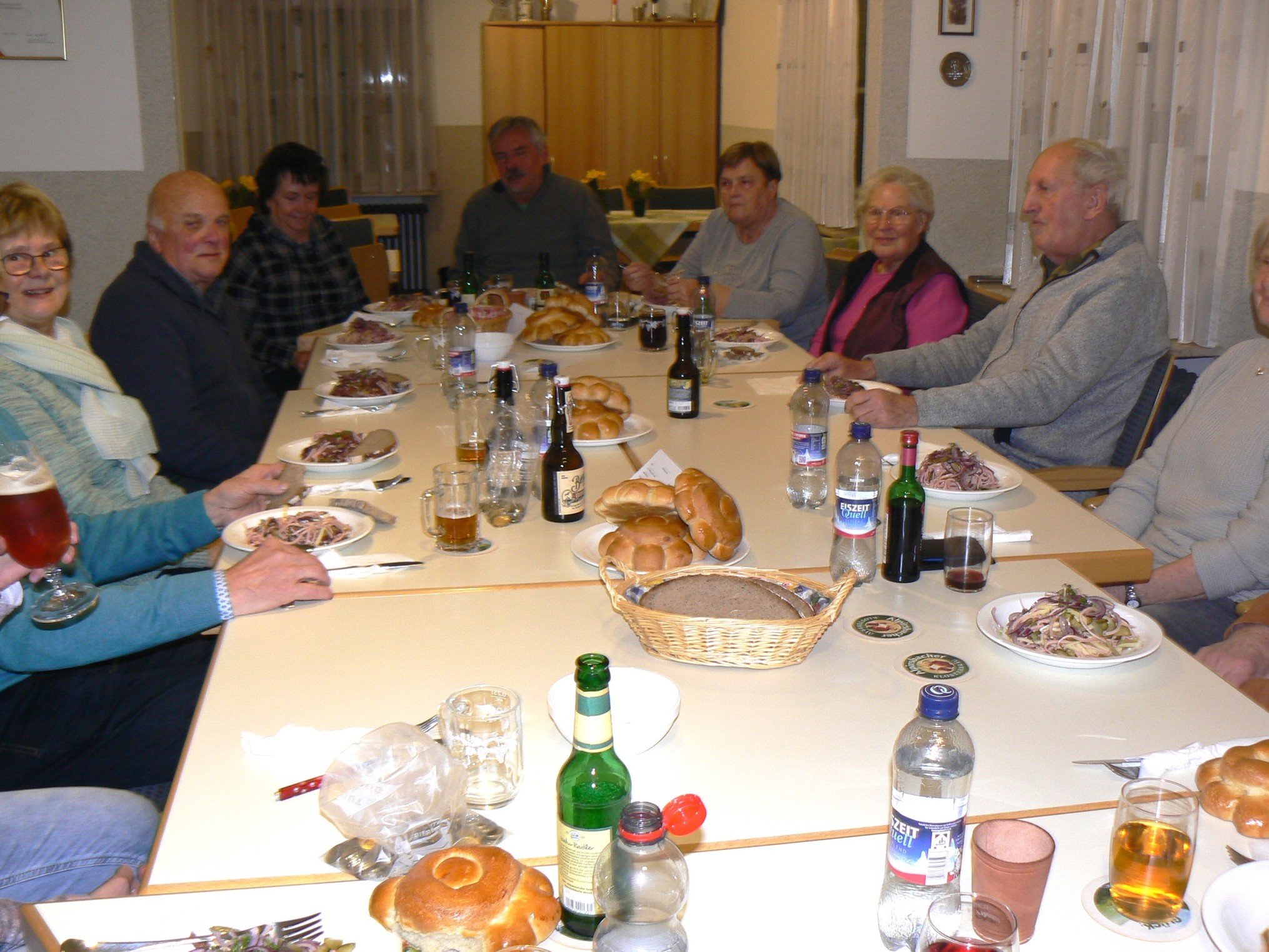 Auch für das leibliche Wohl war gesorgt, denn zu den Mutscheln wurden verschiedene Wurstsalate gereicht und die Teilnehmerinnen und Teilnehmer ließen sich nicht lange bitten kräftig zuzulangen.