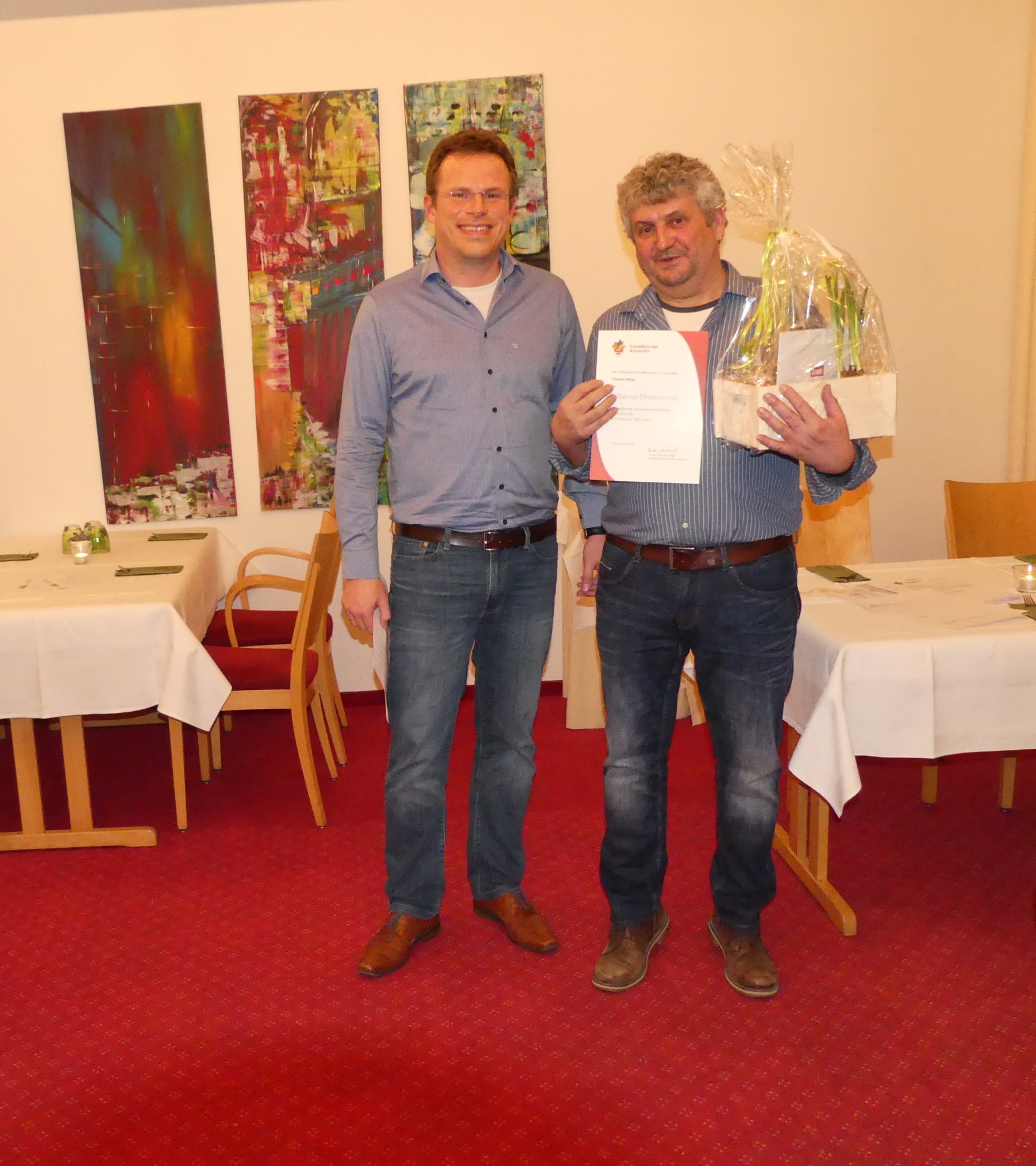 Im Anschluss würdigt Christof Ernst in einer Rede ausführlich die besonderen Leistungen und das Engagement von Thomas Maier als Jugendbetreuer seit 1983 und als 1. Vorstand der Ortsgruppe seit Februar 2003. Christof Ernst verliest das Dankesschreiben des Präsidenten des Schwäbischen Albvereins, Dr. Rauchfuß und übergibt Thomas Maier die silberne Ehrennadel und Ehrenurkunde des Hauptvereins.